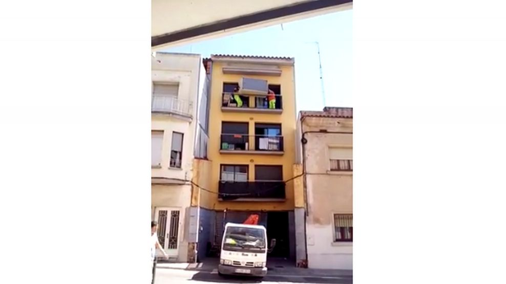 Dans la vidéo, deux gars essayent tant bien que mal de déplacer un gros canapé. Nous ne savons pas pourquoi ils sont sur le balcon, mais toujours est-il que le déménagement ne va se passer comme prévu. Les ouvriers font faire une grosse boulette…
