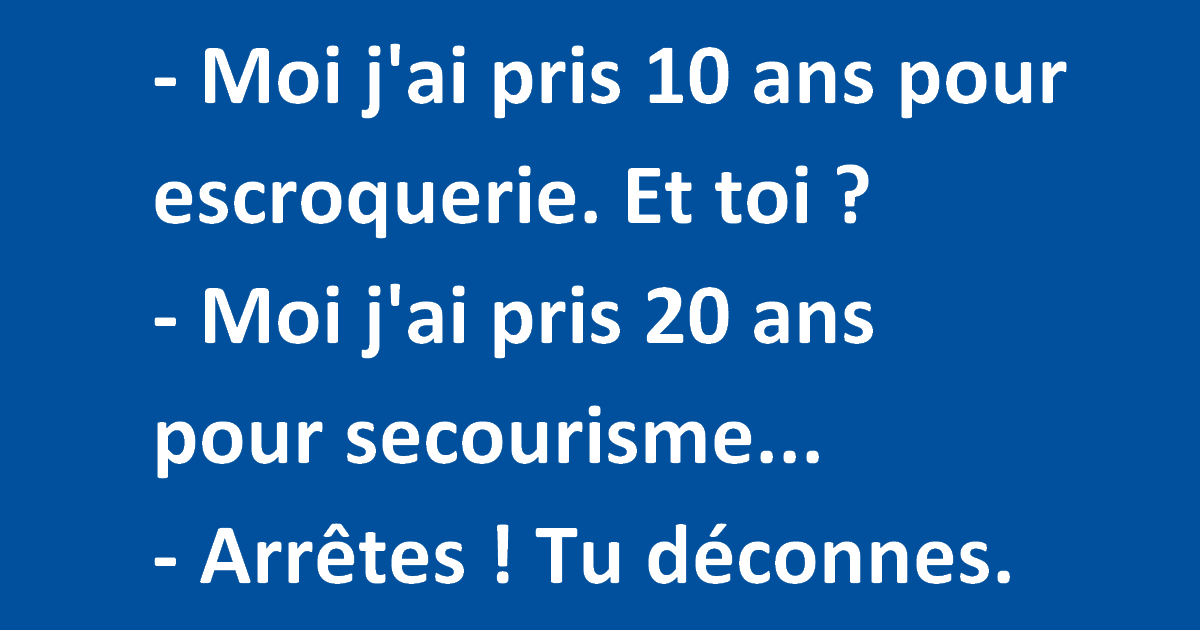 – Moi j’ai pris 10 ans pour escroquerie. Et toi ? – Moi j’ai pris 20 ans pour […]