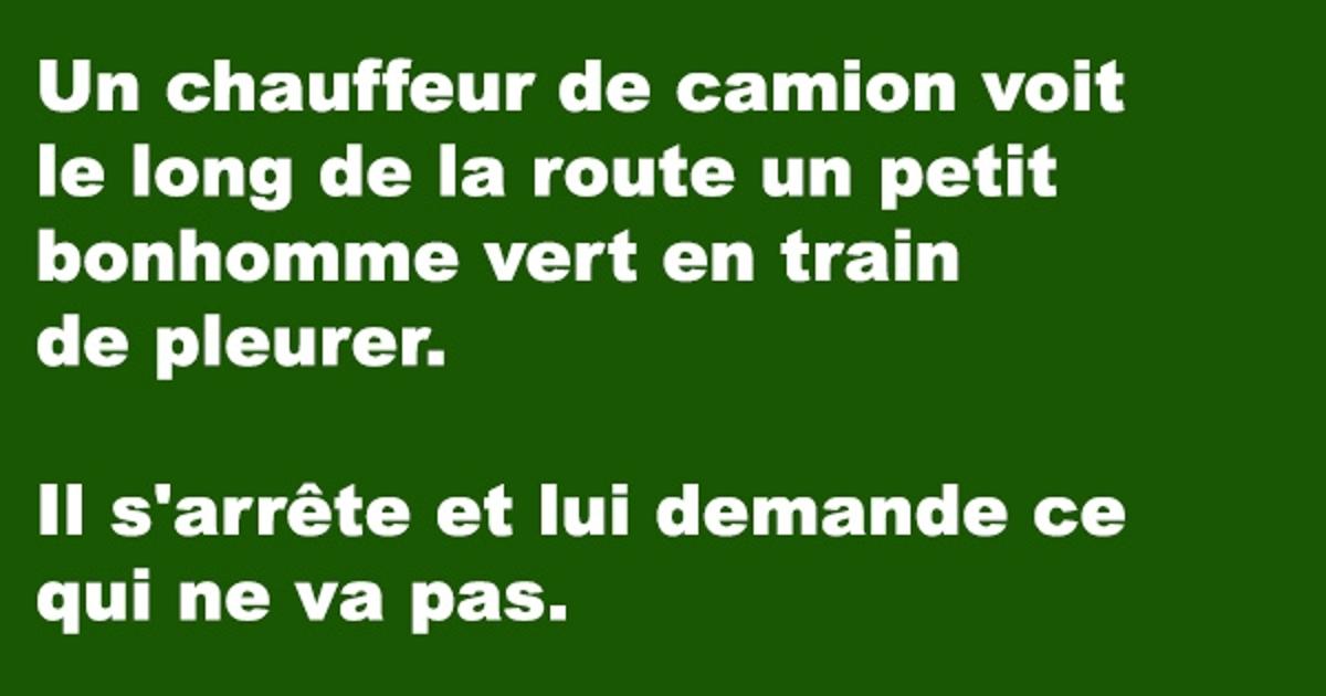 Un chauffeur de camion voit le long de la route un petit bonhomme vert en train de pleurer…