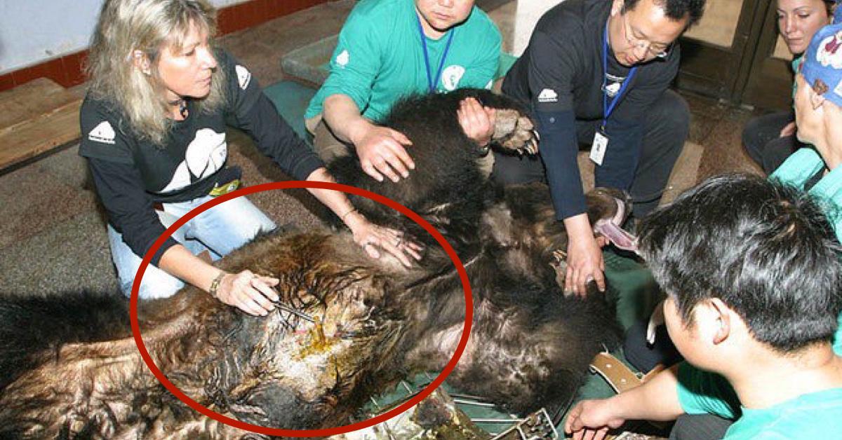 Cette ourse est finalement libérée après avoir été torturée. Mais ce qui lui sort du ventre à choqué ses sauveteurs!