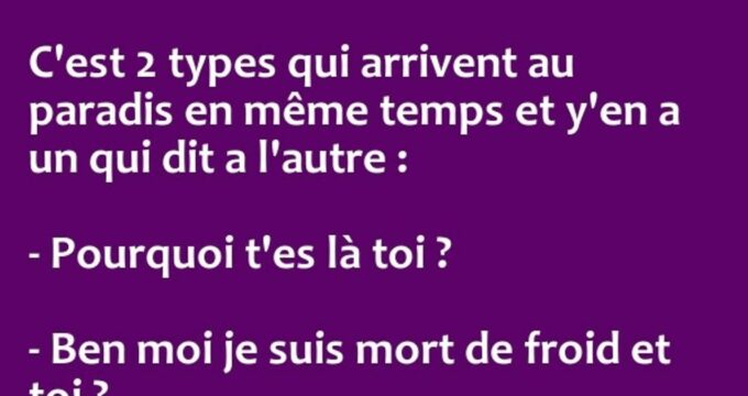C’est 2 types qui arrivent au paradis en même temps et y’en a un qui dit a l’autre…