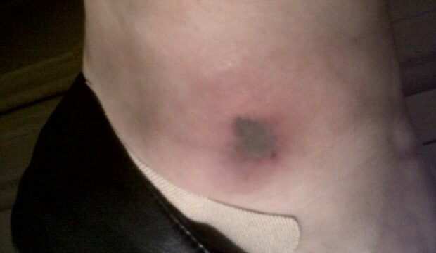 En se réveillant, elle a vu une tâche noire sur sa jambe.