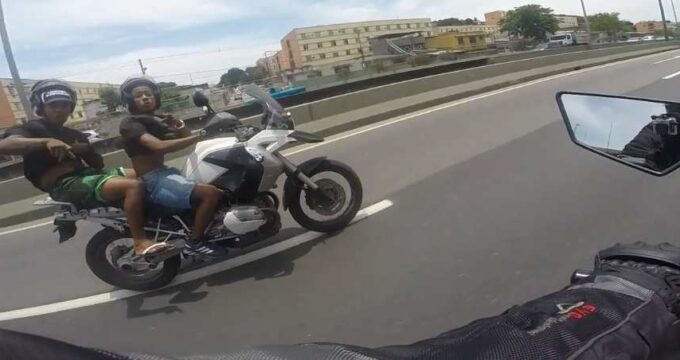 Au Brésil, il y a encore énormément de délinquants et de criminels donc si vous voulez partir en vacances dans ce pays, faites attention à vous. Récemment, sur une autoroute brésilienne non loin de Rio de Janeiro, un motard a eu la mauvaise surprise de croiser deux voleurs. Les images sont particulièrement terribles à regarder car on peut découvrir que le motard va tomber au sol en essayant de s’enfuir. L’homme s’en est sorti grâce à ses protections mais il a aussi eu de la chance car il a chuté à plus de 150 km/h. La vidéo est impressionnante !