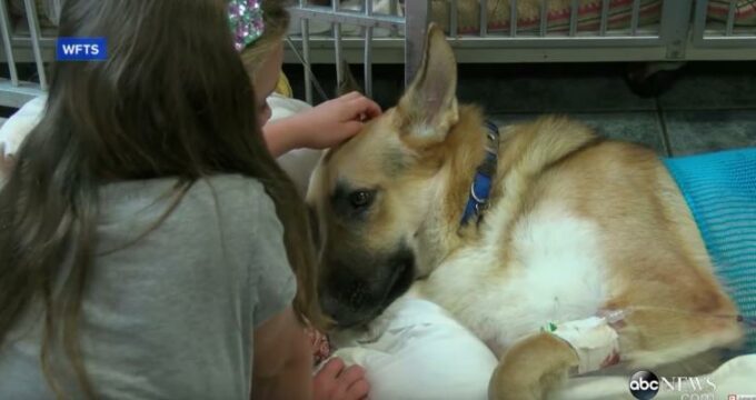 Alors que la bambine de deux ans jouait avec le chien sur le bord de la piscine, un crotale diamantin s’est approché, menaçant. Alors qu’il allait attaquer la petite fille, Haus l’a défendue, faisant barrage de son corps devant le serpent. Même si le serpent le mordait, il n’a jamais quitté ni sa position, ni Molly.