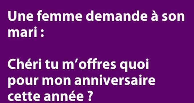 Chéri ! tu vas m’offrir quoi pour mon anniversaire ? le mari lui dit…