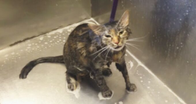 Nous savons combien les chats détestent l’eau et détestent être lavés (ils savent le faire si bien par eux-mêmes!). La femme de cette vidéo faisait le bain à son chat quand il a fait quelque chose qui l’a laissée sans voix: il lui a demandé d’arrêter! Si vous regardez la vidéo, vous entendrez distinctement le pauvre chat qui implore avec un « No More! » (En français: « Ca suffit! »)