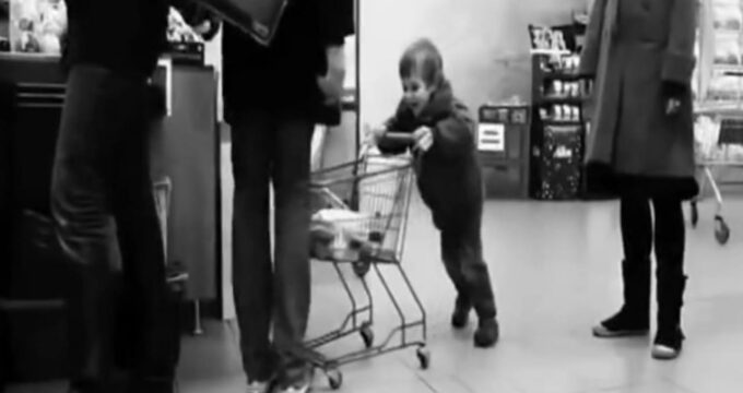 Un gamin le frappe plusieurs fois avec le panier, la mère ne fait rien, ce qu’il fait..