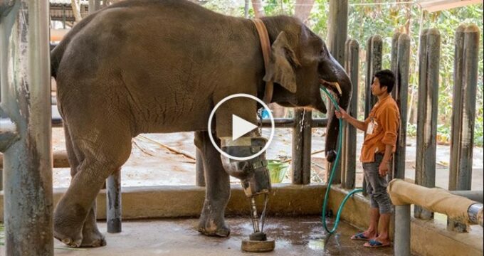 Aujourd’hui, une dizaine d’années plus tard, l’animal pèse plus de 1800kg et sa croissance a nécessité 9 prothèses différentes afin de supporter son poids. La nouvelle prothèse a été posée par les chirurgiens du seul hôpital des éléphants du monde qui se situe à Lampang en Thaïlande.