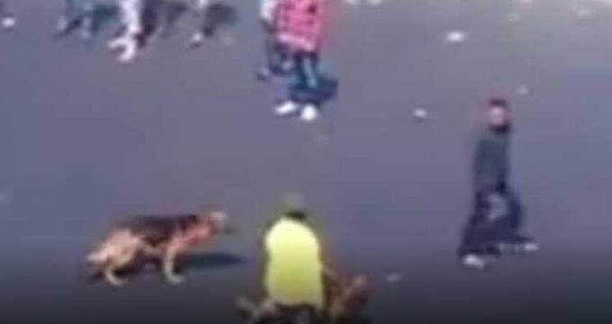 Cette vidéo a fait surface sur les réseaux sociaux et on y voit un homme qui, torse nu, jette des cailloux sur un homme accompagné de deux chiens. Celui-ci s’éloigne d’un groupe de gens hostiles, tout en essayant de calmer ses bergers allemands.