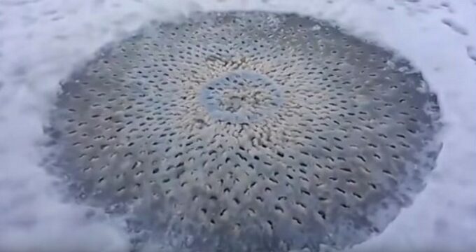 Dans cette vidéo, nous pouvons voir une découverte assez stupéfiante qui éveille la curiosité. Aucune idée de ce que c’est vraiment mais c’est assez surréaliste ce rond dans lequel il y a des sortes d’œufs.