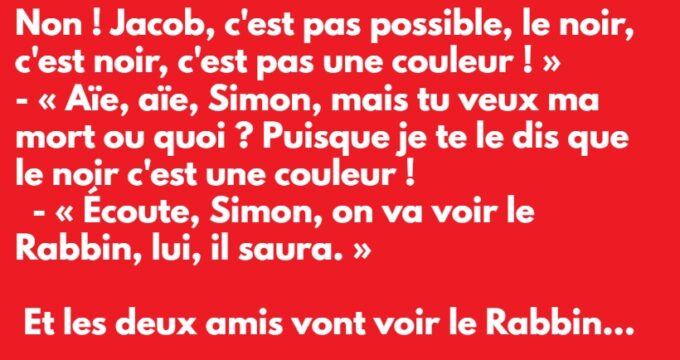 – « Ma parole ! » Hurle le Rabbin, « taisez-vous ! Bien sûr que le noir, c’est une couleur !
