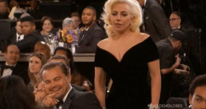 La réaction de Leonardo DiCaprio qui se fait bousculer par Lady Gaga est épique !