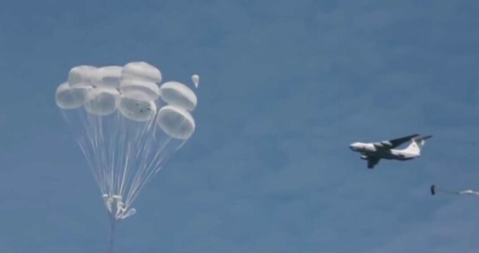 La Russie fait de nouveau parler d’elle. La presse a eu l’occasion de voir un entraînement de l’armée russe. Un entrainement insolite puisqu’ils ont vu des chars d’assauts jetés d’un avion. Évidemment, ces armes de guerre sont équipés de plusieurs parachutes. Rappelons tout de même qu’un tank vaut approximativement 2 millions d’euros. Autant dire que les russes n’ont pas envie de voir l’engin exploser au sol. Dans la vidéo, vous pouvez assister à plusieurs largages réussis. A noter que c’est une préparation en vue d’envoyer des troupes pour botter le *** des malades mentaux en Syrie.