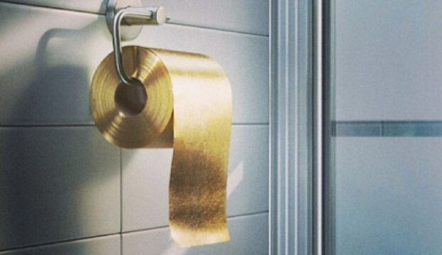 Vous connaissez mon goût pour les chiffres ronds. Donc concrètement, ce papier toilette version « gold » est fait en or (22 carats) et il vous permettra d’avoir des fesses bien propres.