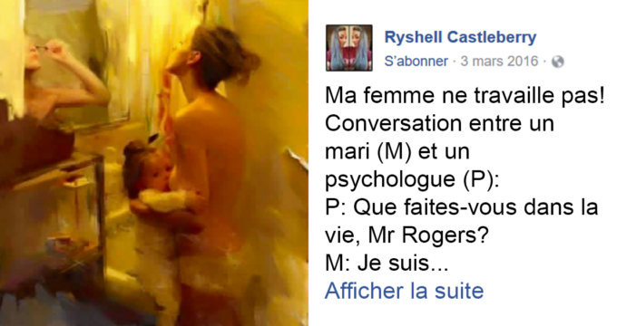 Tannée de toujours entendre la phrase « que fais-tu toute la journée? », Ryshell Castleberry a décidé de rédiger un hommage à toutes les mères au foyer par l’entremise de Facebook. Sa publication est rapidement devenue virale, et elle a été partagée plus de 300 000 fois.