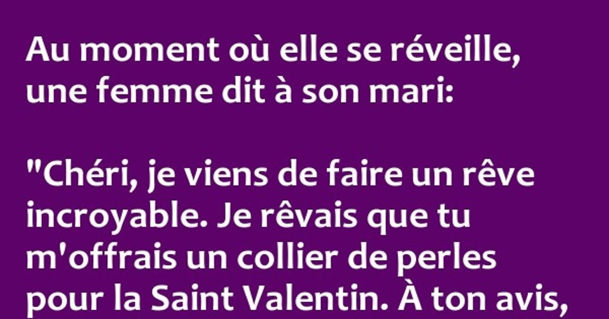 Au moment où elle se réveille, une femme dit à son mari : « Pour la St Valentin… » 14 février 201714 janvier 2017 par Guillaume Her Au moment où elle se réveille, une femme dit à son mari : « Pour la St Valentin… »