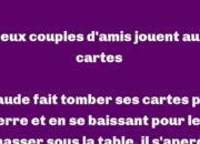 Humour Claude fait tomber ses cartes par terre et en se baissant pour les ramasser sous la table… 20 septembre 2017 • 1 min