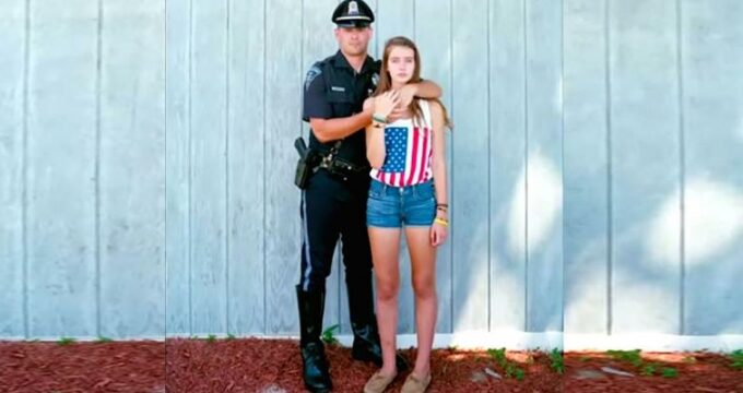 Un policier enlace une ado pour prendre une photo, mais quand on regarde la photo de plus près… ouah!