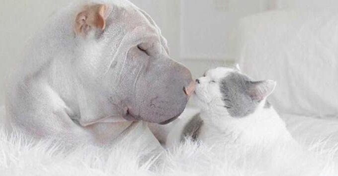 Quand un Shar Pei devient ami avec un chat. Vous allez fondre devant tant de douceur