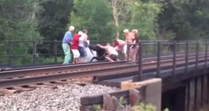 Alors qu’une femme passait devant un pont soutenant une voie ferrée près de Valparaison, en Indiana, elle a remarqué quelque chose sur les rails.