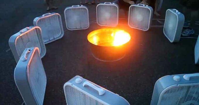 Eric Sipes et des amis ont réalisé une expérience plutôt insolite que je vous invite à découvrir ci-dessous. Ils ont placé autour d’un feu des ventilateurs. C’est plus de 10 ventilateurs qui ont été installés sur le sol pour réaliser cette vidéo.