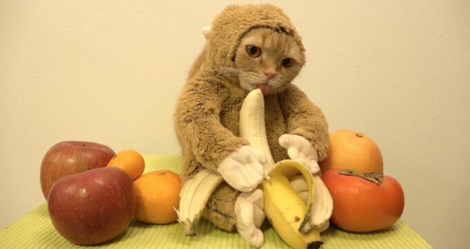 Bon ! il est juste déguisé mais son costume lui va assez bien d’ailleurs il a l’air d’adorer les bananes. Tchita aime ça ! ;)