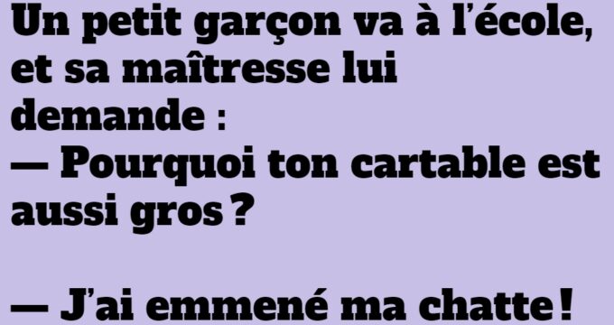 Un petit garçon va à l’école, et sa maîtresse lui demande :