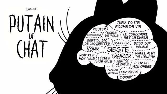 Ce dessin est issu de sa bande-dessinée « Putain de chat ». Vous pouvez vous procurer ce livre très drôle sur Amazon –>https://www.amazon.fr/Putain-chat-Lapuss/dp/B01E9TG4RA (8 euros).
